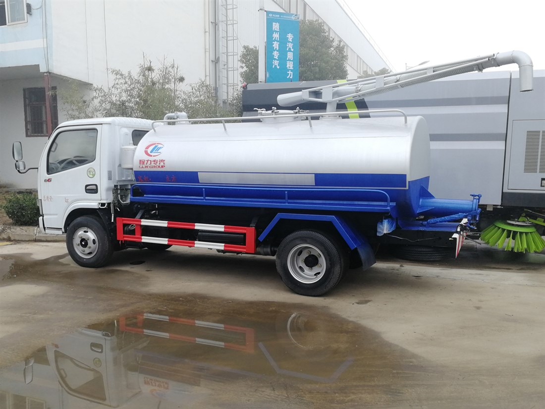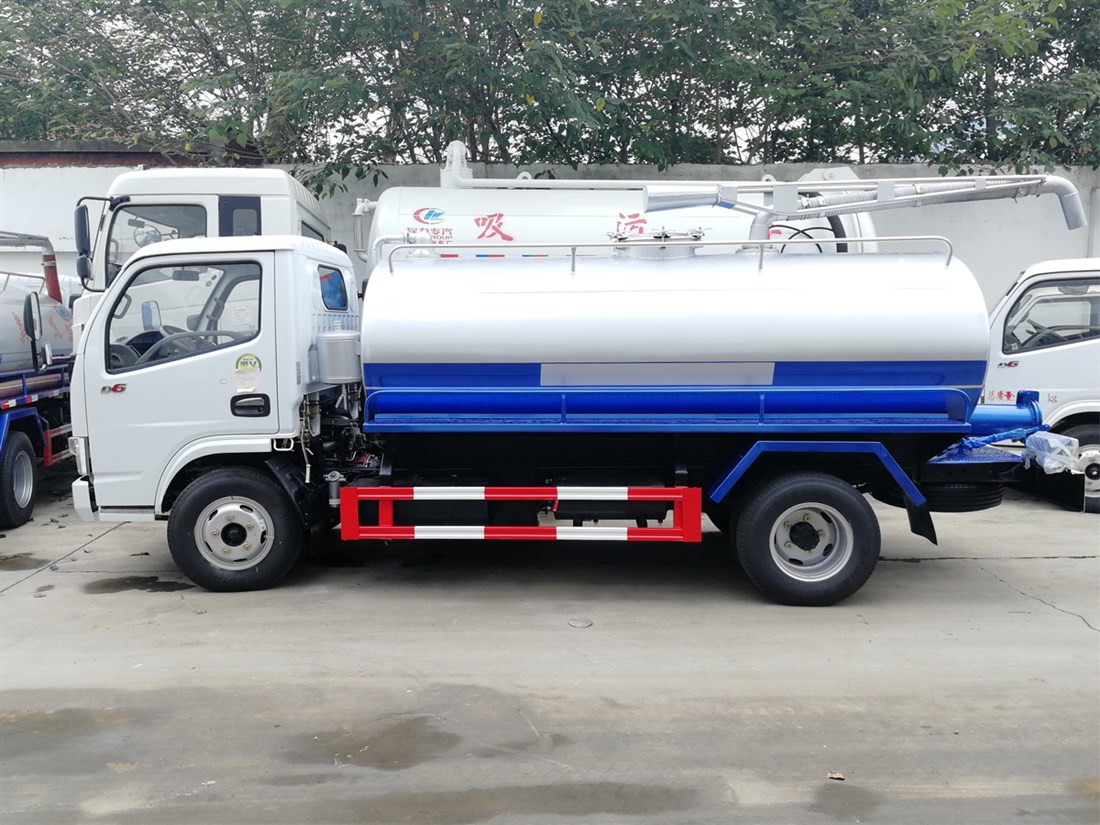 | 東風5方吸糞車標準配置:罐體采用國標4mm碳鋼板,有效容積5方,配偉業5t油泵(選裝水環泵)。 東風5方吸糞車專用部分由取力器、傳動軸、真空吸污泵、高壓成型罐體、油氣分離器、吊桿、放糞閥、吸糞槍,管網系統組成,并裝有真空壓力表、視污窗(管),洗手裝置。 程力汽車生產的東風5方吸糞車安裝進口防溢流裝置,防止糞便、污水因吸滿倒灌至真空泵系統,罐頂帶吊桿座,吸糞導物管可360度旋轉,排放有加壓排放和自流排放兩種方式。 | |||