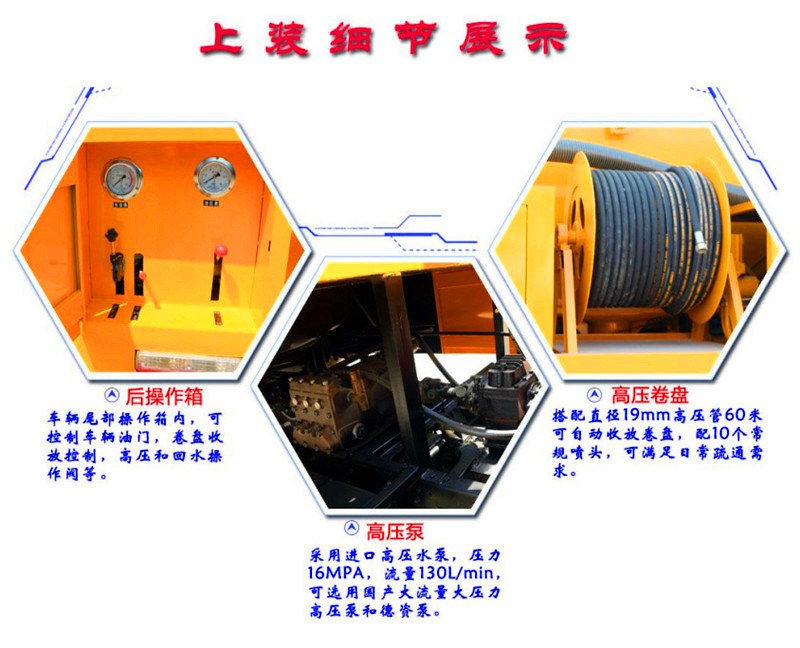 東風(fēng)4方高壓清洗車罐體材質(zhì)為優(yōu)質(zhì)武鋼板材,罐體容積4方,罐體厚度4mm,配置天津通潔或德國進(jìn)口品孚高壓水泵,性能穩(wěn)定,清洗、疏通效果好。整車油泵、油馬達(dá)、多路閥等配件均選用國內(nèi)名牌產(chǎn)品,配備耐壓膠管60米長,卷管力1800n 、膠管內(nèi)徑φ19 mm 、卷管速度為0-30米、推進(jìn)力≥180 n 。采用變速箱夾心取力技術(shù),功率損耗接近為零,且噪音小;取力器開啟,為駕駛室氣動操作,減輕了操作人員的勞動強(qiáng)度。