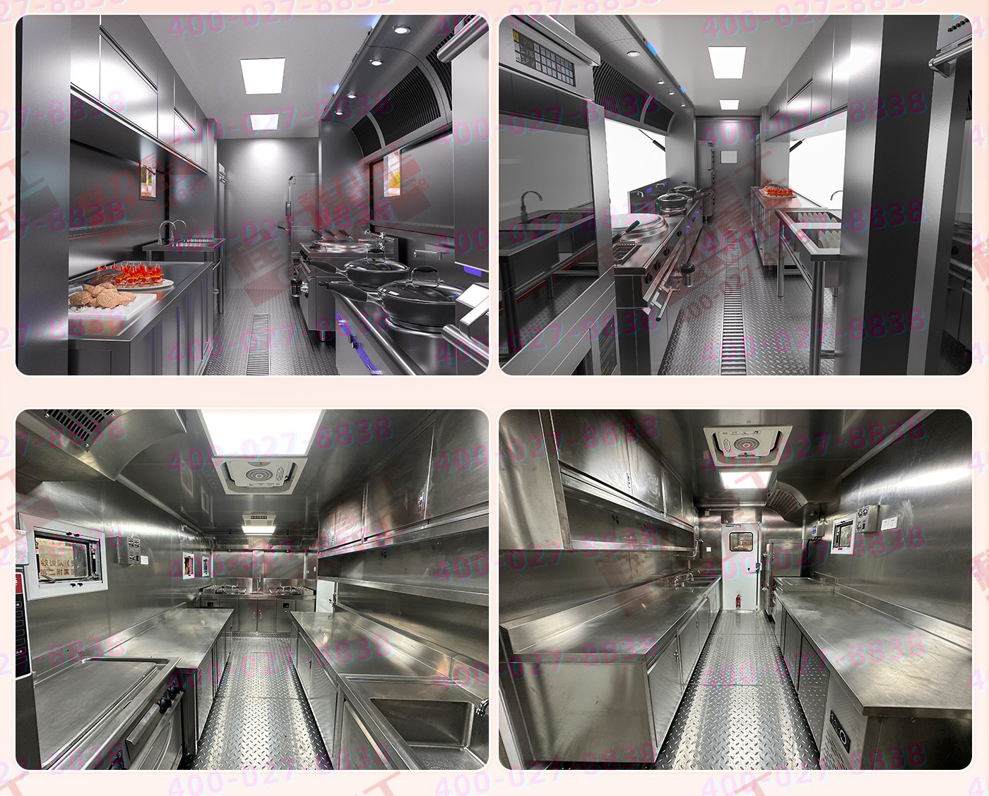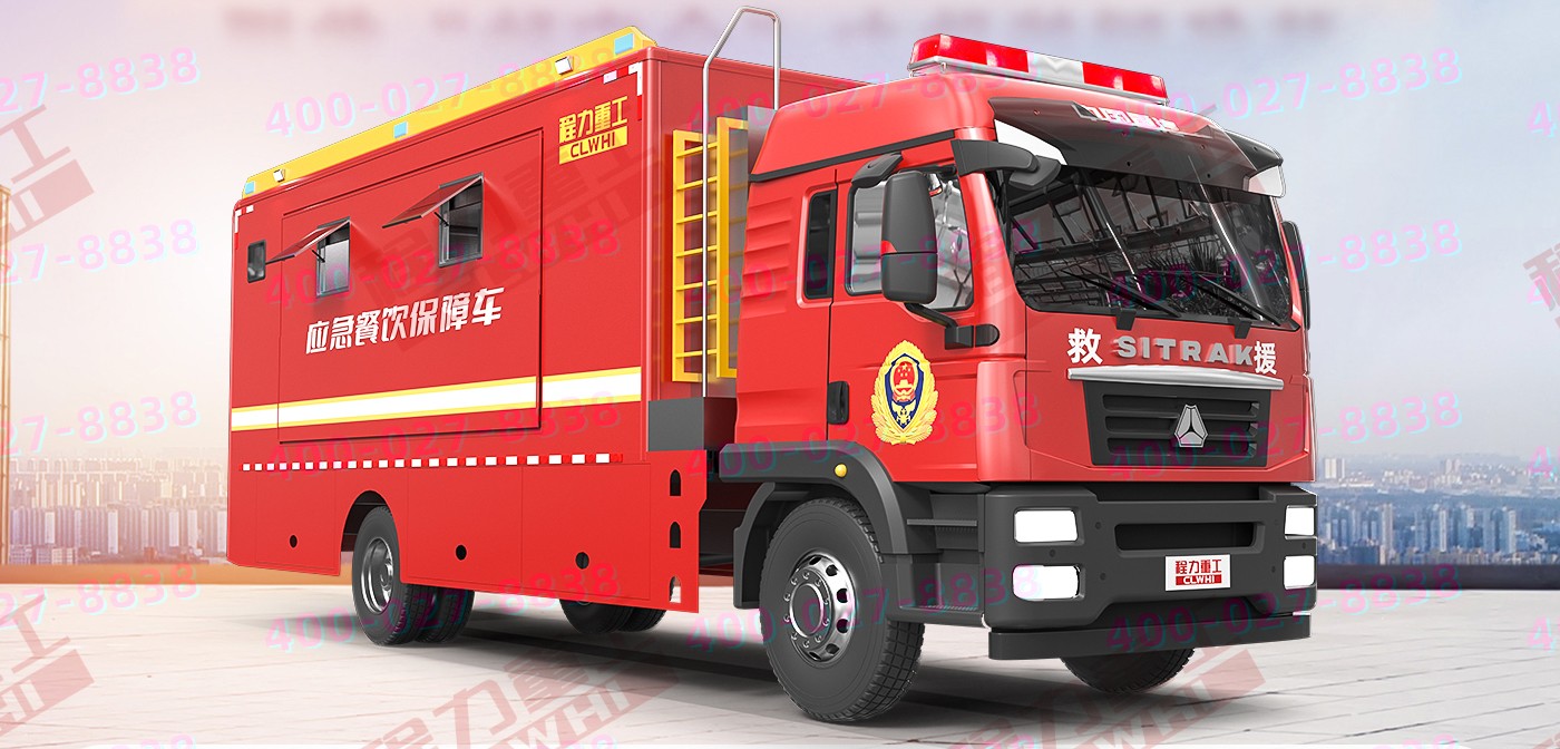 重汽汕德卡飲食保障車集爐、櫥、箱、案與一體,緊湊靈巧;實現了衛生、健康、環保的要求; 功能性等集合為一體。車廂可兩邊展開作為打餐窗口;車廂內飾為不銹鋼,配備不銹鋼爬梯、護欄、凈水箱,污水箱,雙眼灶,蒸飯車,冰箱等。不銹鋼整體壁柜,工作臺,發電機,空調等。該車機動性能好,專業性強,自動化程度高,自然環境適應性強,并能在駐車和行車時進行炊事作業,可保障執行野外任務部隊的飲食和飲水供應。