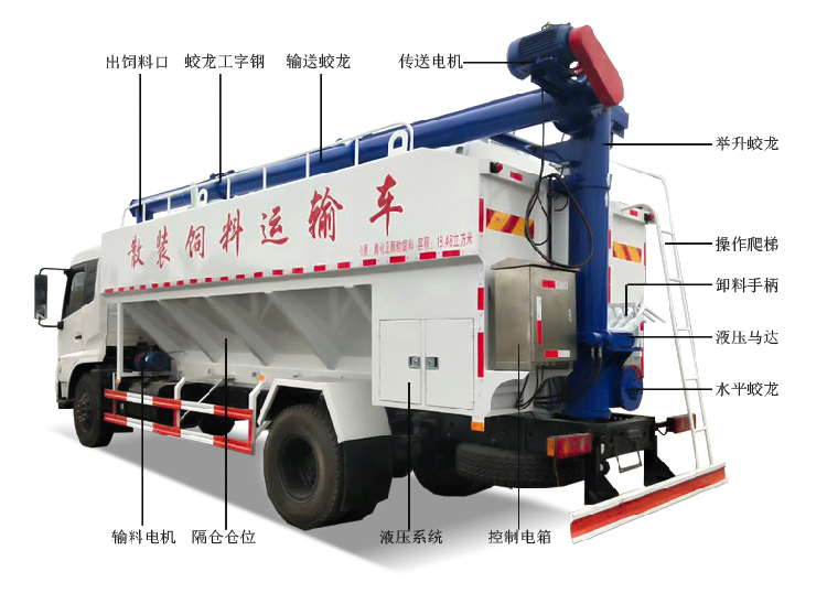 電動(dòng)絞龍散裝飼料運(yùn)輸車是針對(duì)不同客戶群最新研發(fā)的、滿足低端市場(chǎng)的新產(chǎn)品,該車可配車載發(fā)電機(jī),電動(dòng)絞龍利用市電三相380v來供電。采用機(jī)械螺旋的卸料方式,卸料速度快,可連續(xù)作業(yè),大大提高生產(chǎn)效率。